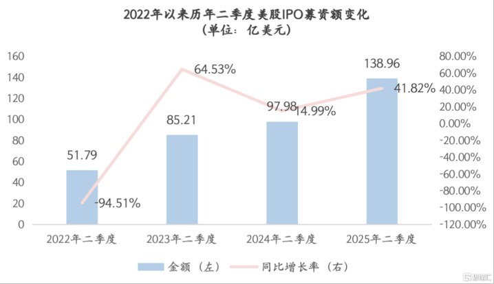 Wind数据显示,截至7月9日,美股市场共有211家企业完成IPO,募集资金总额为269.33亿美元。其中,二季度发行的美股IPO数量为110家,IPO募资总额相较去年同期同比增长41.82%,反映出投资者对新股认购意愿的普遍提升。